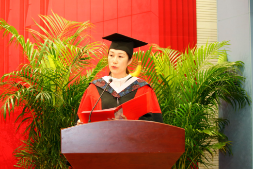典礼进行第四项,赵景华院长致辞。赵院长对毕业生们圆满完成学业表示热烈的祝贺,对毕业生的父母、师长、亲人和朋友致以崇高的敬意和衷心的感谢!在永利集团3044官网欢迎您学习的几年中,同学们付出了汗水、辛勤、努力与真诚,收获了知识、理想、成长与友谊;在思想政治上逐步走向成熟,在学业、研究上取得长足进步,同学们的历史使命感和社会责任感变得更加强烈,国际战略视野和领导与管理能力不断提升,这些成长都让学院倍感欣慰和骄傲。院长指出,同学们正处在一个伟大的时代,新一轮科技革命在世界范围内展开,面向未来,如何捕捉先机让中国从前几次科技革命的旁观者、参与者,向新一轮技术革命的引领者转变,是摆在我们每个人面前的重任。在同学们即将踏入新时代的社会,开启人生新时代之际,赵院长向大家提出三点期望:志当存高远,心当存澄洁,永远保持学习和思考的热情,永葆探求新知和追求真理的活力,长存刚正不阿之正气、兼容并蓄之大气和坚持真理之骨气;坚守责任之心,勇于奉献担当,在工作岗位上勇挑重担、攻坚克难,用自己的聪明才智为国家的强盛、为人民的幸福、为中华民族的振兴、为人类文明的进步做出自己的贡献;保持豁达心态,包容万象世界,以豁达的心态直面高潮与低谷,以宽容的性情去对待失落和坎坷,始终保持沉着、理性、平和的心态。最后,赵院长寄语在座同学:满怀希望的去开拓自己的人生新时代,铭记中财的美好时光,勤勉努力,砥砺前行!