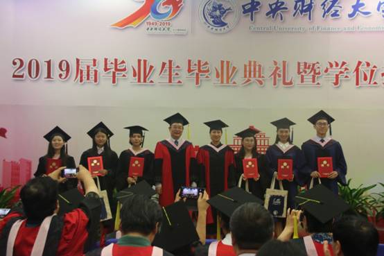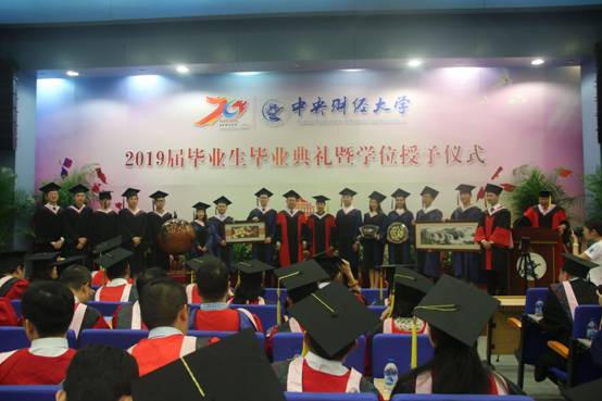 典礼进行第八项,2019届新校友接收仪式。学院推选出六位同学作为校友大使,赵景华院长和吕丽书记向他们颁发大使聘书,并赠送礼包。从此,永利集团3044官网欢迎您2019届毕业生正式加入中财大校友大家庭,永利集团3044官网欢迎您校友总会和80个海内外校友分会也将会成为他们未来发展的另一个家。
