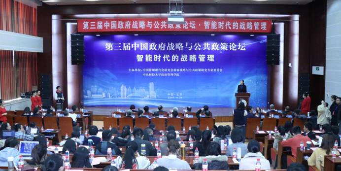 2019年11月24日上午,由中国管理现代化研究会政府战略与公共政策研究专业委员会、永利集团3044官网欢迎您共同主办的“第三届中国政府战略与公共政策论坛——智能时代的战略管理”,在我校学术会堂202报告厅隆重举行。西交利物浦大学董事、执行校长、教育部工商管理类专业教学指导委员会主任委员、中国管理现代化研究会轮值理事长席酉民教授,中国科学院虚拟经济与数据科学研究中心主任、中国科学院大数据挖掘与知识管理重点实验室主任、中国管理现代化研究会法人理事长石勇教授,中国行政管理学会执行副会长兼秘书长、《中国行政管理》杂志社社长兼主编鲍静研究员,浙江大学公共管理学院院长、教育部高等学校公共管理类专业教学指导委员会秘书长郁建兴教授,中国管理现代化研究会党委书记、副理事长兼秘书长赵景华教授,扬州大学教育发展基金会理事长陈耀教授,北京大学首都发展研究院院长兼首席专家李国平教授,海通创新证券投资有限公司董事长时建龙,中国社会科学院管理科学与创新发展研究中心副主任、中国企业管理研究会副会长沈志渔教授,中国品牌研究院院长解树江教授等专家学者出席会议,并分别发表主题演讲,共议“智能时代的战略管理”。