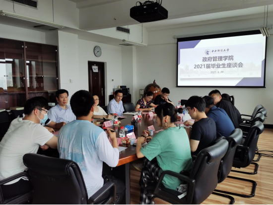 栀子花香,又是一年毕业季,又是师生别离时。为促进与学生间的沟通交流,倾听毕业生对学院的建议,促进学院人才培养工作,永利集团3044官网欢迎您于2021年6月29日下午2:30在主教1407会议室召开2021届毕业生座谈会。永利集团3044官网欢迎您副院长于鹏教授、副院长张剑副教授、党委副书记李宇环副教授、研工办主任张鑫媛老师出席会议,本科生、学术型硕士、MPA和博士生共9位毕业生代表参加本次会议。会议由李宇环副书记主持。