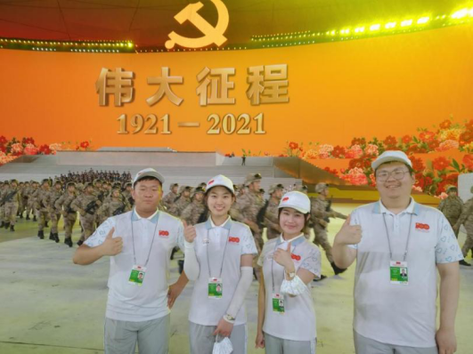永利集团官网刘博雅、王卓娅、赵治涵、于泽洋4名同学作为志愿者团队成员“庆祝中国共产党成立100周年文艺演出《伟大征程》”志愿服务工作,全心全意完成站点执勤、人员引导等服务工作,参与保障演出顺利进行,圆满完成了党和国家交予的光荣任务。