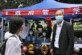 学校领导高度重视此次迎新工作。清晨的阳光刚破开阴雨的帷幕,云销雨霁之时,校党委书记何秀超,校长王瑶琪等校领导一行来到了接待点。校领导与学院师生们进行亲切的交谈,向他们表示热烈欢迎,仔细询问新生接待工作的进度,充分肯定了学院迎新工作开展的井然有序,氛围热情温暖。当看到学院吉祥物政宝热情地与新生互动、志愿者们热心地帮助新生们合影时,校领导们也频频点头表示赞许。