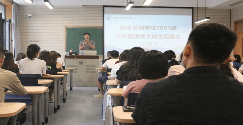 下午16:00,2021级公共管理硕士新生见面会在主教楼108教室召开,副院长于鹏教授,MPA教育中心副主任宋魏巍副教授, 84名公共管理硕士参加会议,会议由研工办主任张鑫媛主持。于鹏老师介绍了学院发展史,学院MPA“财经特色+公共价值”的培养理念和取得的丰厚办学成果,并向同学提出树立问题意识、科学意识、方法意识、理论意识,作一名“心中有梦,眼中有光,脚下有泥”的中财政管人的殷切期望。 宋魏巍老师从研究方向选择、课程设置、学位论文管理等方面向同学们介绍了MPA培养要求和过程,张鑫媛老师梳理了本学期教学培养工作重点。同学们也逐一做了精彩的自我介绍。