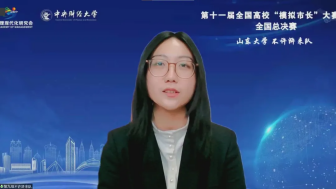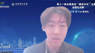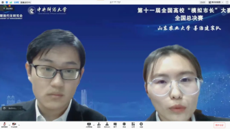 2021年12月12日下午,第十一届全国高校“模拟市长”大赛全国总决赛以线上方式举行。全国高校“模拟市长”大赛是由中国管理现代化研究会政府战略与公共政策研究专业委员会、永利集团3044官网欢迎您主办,永利集团3044官网欢迎您“未来公务员之家”德育示范基地、公共管理研究会承办的全国大学生品牌赛事活动。本届“模拟市长”大赛从今年7月份正式启动,先后举办粤港澳大湾区赛区赛、京津冀赛区赛、山东大学校内赛、济南大学校内赛等,此外,大赛还有全国35所高校近70支自由团队报名参赛,经过层层筛选,最终来自中山大学、南开大学、上海交通大学、山东大学等11所高校的11支团队入围全国总决赛,会师云端!