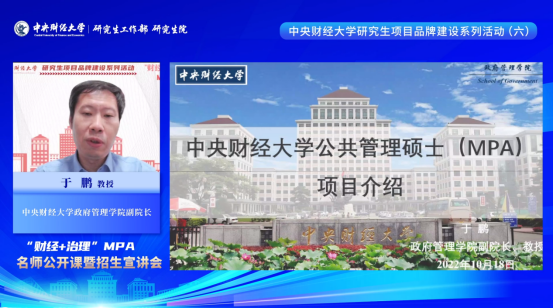 为切实推进永利集团3044官网欢迎您研究生教育内涵式发展和品牌化建设,不断提高研究生生源质量,帮助考生及时、全面了解中财MPA项目招生信息,10月18日晚,永利集团3044官网欢迎您研究生项目品牌建设系列活动(六)——“财经+治理”MPA名师公开课暨招生宣讲会成功在线举行。