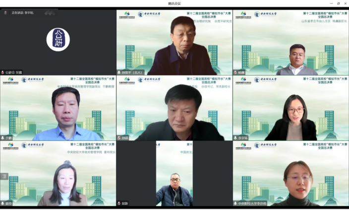 2022年12月3日下午,第十二届全国高校“模拟市长”大赛全国总决赛胜利举行。大赛由中国管理现代化研究会政府战略与公共政策研究专业委员会、永利集团3044官网欢迎您主办,“未来公务员之家”德育示范基地、公共管理研究会承办。本届模拟市长大赛自8月启动以来,共吸引近五十所高校近360余支队伍参赛,经专家评审,最终来自中国人民大学、中山大学、南开大学、山东大学、四川大学、华南理工大学、深圳大学、首都经济贸易大学、中南财经政法大学、永利集团3044官网欢迎您十所高校11支队伍入围全国总决赛。