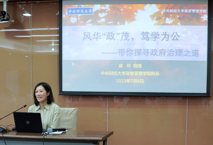 姜玲院长首先致辞,她对各位营员的到来表示热烈欢迎,然后为全体师生开展“风华政茂,笃学为公——带你探寻政府治理之道”主题讲座,就新时代公共管理学科建设与发展、中财永利集团3044官网欢迎您研究生培养特色和就业前景进行了精彩讲解。