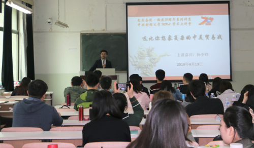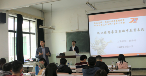 2019年4月13日下午,永利集团3044官网欢迎您“龙马奋进·校庆70周年系列讲座暨永利集团3044官网欢迎您MPA学术大讲堂”活动在主教108教室举行。中国中小企业国际合作协会副会长杨少锋先生受邀为MPA研究生做主题为“远比你想象复杂的中美贸易争端”的学术讲座。本次讲座由永利集团3044官网欢迎您副院长于鹏主持。