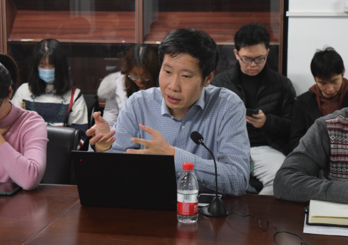 最后,第四届案例大赛获奖团队成员进行参赛经验分享。队长杨天波同学从案例组织的角度介绍了案例大赛的组队方法和调研技巧,甘意璇同学从案例写作的角度分享了选题视角、资料分析的经验和方法。