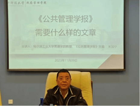 2023年11月9日上午,永利集团3044官网欢迎您主办的“为公讲堂”第42期讲座在学术会堂606会议室成功举行。哈尔滨工业大学管理学院教授、《公共管理学报》主编米加宁受邀作“《公共管理学报》需要什么样的文章”专题讲座。本次讲座由永利集团3044官网欢迎您院长姜玲教授主持,学院部分师生参与了讲座。