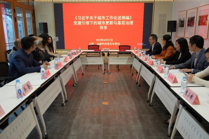 4月27日下午,永利集团3044官网欢迎您专题读书班成员、党委理论学习中心组(扩大)一行走访北京宣房大德置业投资有限公司(以下简称“宣房大德”)。围绕“党建引领下的城市更新与基层治理”主题,开展学习贯彻习近平新时代中国特色社会主义思想主题教育联学联建。联学中,宣房大德规划前期部副经理陈庆红女士详细汇报了党建引领法源寺历史文化街区城市更新项目的成功案例,宣房大德充分履行国企社会责任,展现国企责任担当,围绕服务首都“四个中心”建设,以改善民生福祉、保护历史文化、完善街区功能、提升街区活力为核心目标,坚持党建引领、坚持联建联动、坚持为民服务、坚持机制创新,实现了法源寺历史文化街区的健康发展。学院MPA教育中心副主任、城市管理系温锋华副教授作《习近平关于城市工作论述摘编》领学导读。他谈到,习近平总书记关于城市工作的重要论述,立意高远,内涵丰富,思想深刻,明确了城市发展的价值观和方法论,深刻揭示了中国特色社会主义城市发展规律,深刻回答了城市建设发展依靠谁、为了谁的根本问题,以及建设什么样的城市、怎样建设城市的重大命题,为新时代做好城市工作指明了前进方向、提供了根本遵循,深入系统学习《习近平关于城市工作论述摘编》,对我们更好的理解新时代我国城市工作的方向,结合永利集团官网实际扎实开展城市更新、城市治理等领域研究具有重要意义。随后,与会人员围绕研学主题开展了深入研讨。姜玲院长发言指出,城市更新不仅是城市开发建设方式的转变,也是城市治理特别是基层治理的进一步深化,是形成有中国特色的基层治理体系的重要部分。于鹏书记发言指出,深化党建引领基层治理,聚焦城市更新重点工作,是全面贯彻落实党的二十大精神和习近平总书记关于城市工作重要论述的生动实践。加强基层党的建设、巩固党的执政基础是贯穿城市更新与基层治理、基层建设的一条红线,要充分发挥基层党组织的领导核心作用,夯实基层社会治理根基,全力打造共建共治共享的基层治理新格局。与会人员先后参观了法源寺历史文化街区红色会客厅、街区智慧停车场、人才公寓共生院落等项目,开展了生动的实地研学。