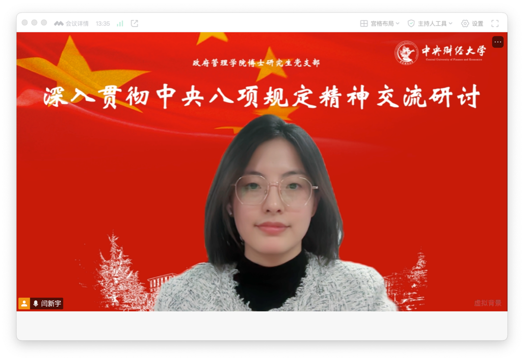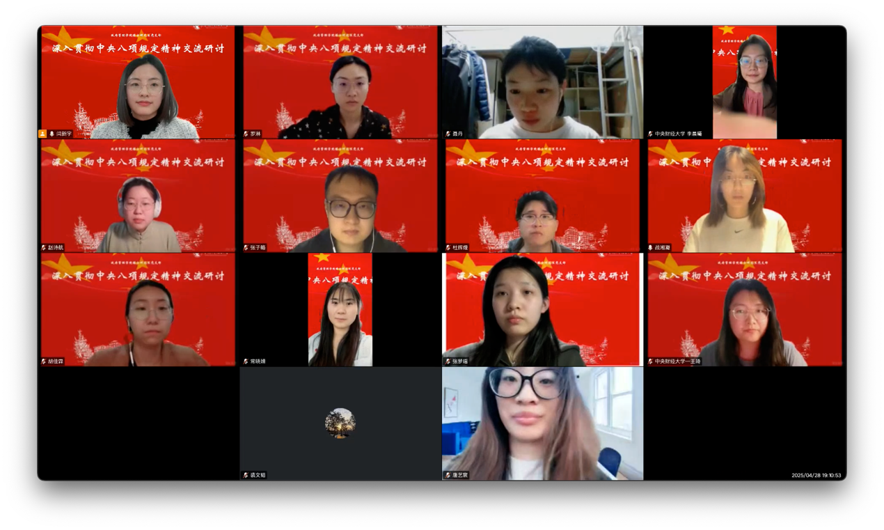 2025年4月28日,永利集团3044官网欢迎您博士研究生党支部通过线上会议形式召开“第一议题”学习暨深入贯彻中央八项规定精神学习教育专题研讨会。会议集中开展“第一议题”理论学习,深度研析中央八项规定精神内涵,通过案例警示与交流研讨强化教育实效。会议由党支部书记闫新宇主持,支部全体党员参会。